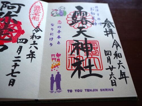 「お初天神」として知られる露天神社(つゆのてんじんしゃ)では多種多様なカラフルな御朱印を頂けます。JR大阪駅のすぐ近くに位置しており、「願いが叶う」ご利益で有名です。